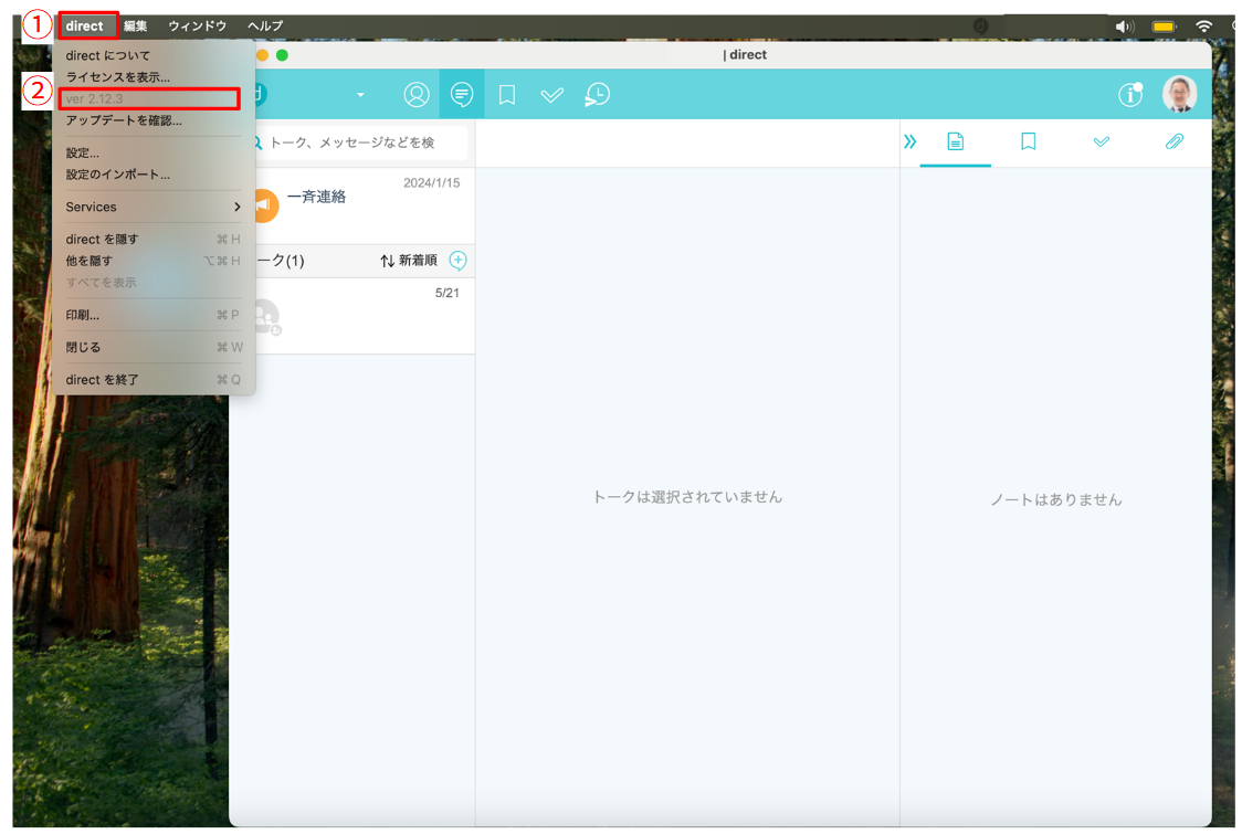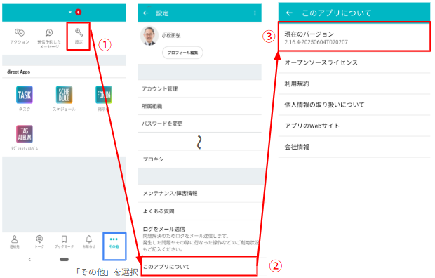 - メニュー項目の「ver 〇〇」と記載されたグレーの文字を確認