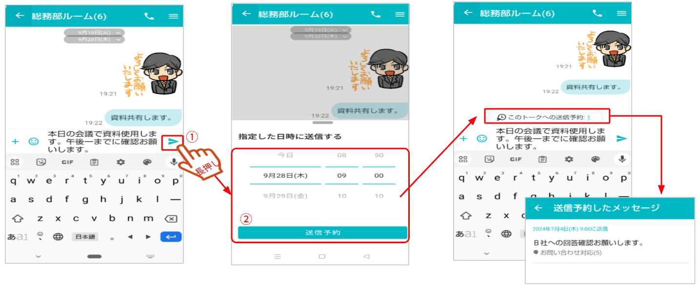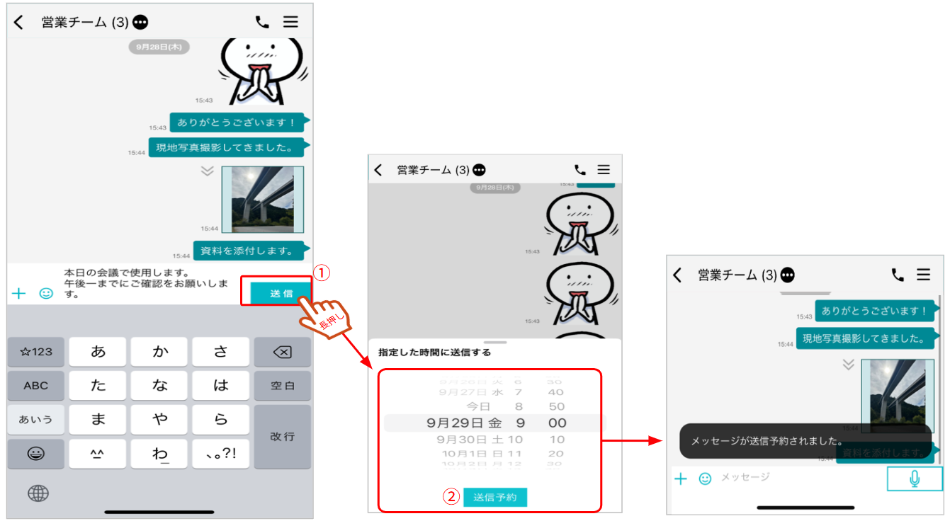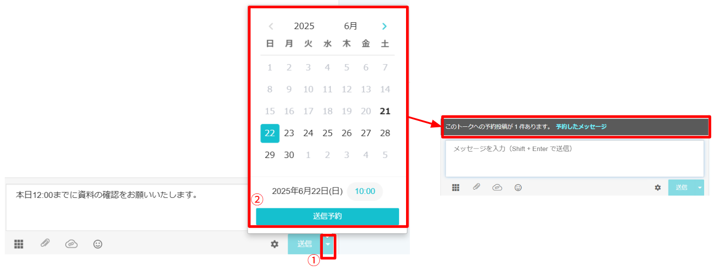 - メッセージ入力後「送信」ボタンの右側の[▼]をクリック
