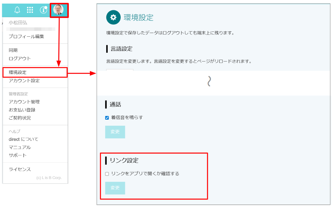 環境設定の「リンクをアプリで開くか確認する」にチェックをつけると、リンク (メッセージ / トーク / ノート) をクリックした際に、directアプリで開くか確認できるようになります。