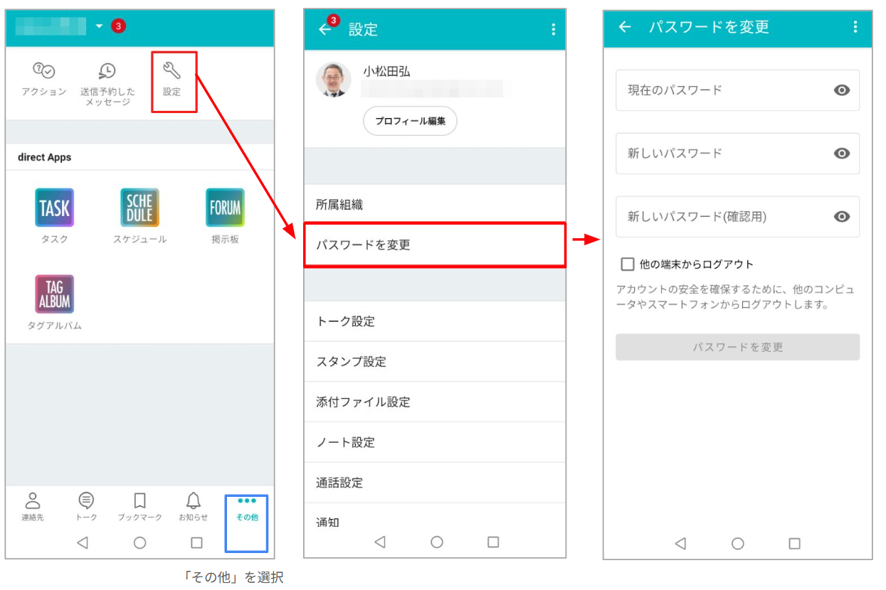 - ログインしているとき [その他]→[設定]→[パスワードの変更]からパスワードを変更することができます。